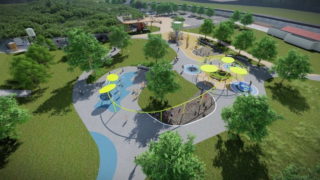 王惠美說,由縣府全額支付約新台幣4409萬元,整合規劃主廟參拜區域,動線重新鋪面,設大榕公歷史故事牆、榕光塔,遊客可從高處眺望;新設祥龍探索遊戲場,以祥龍戲水意象,結合盪鞦韆、跳跳床與傳聲筒等設施,打造兼具宗教信仰、休閒遊憩與親子活動複合型觀光園區。