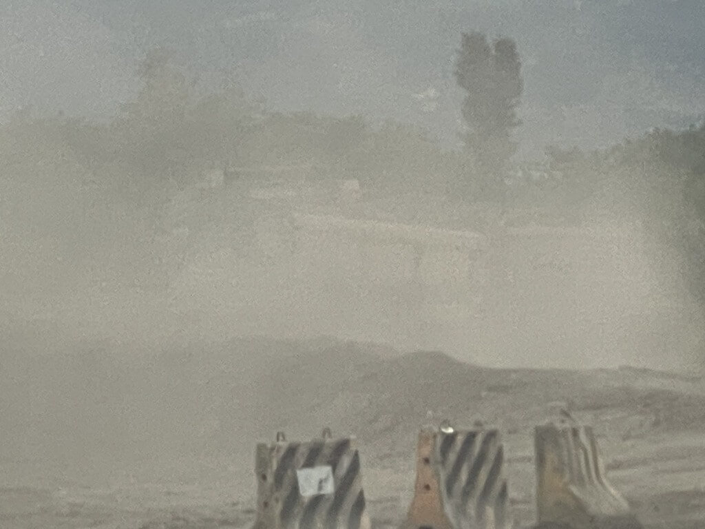 他說,這樣的情況已持續超過1個月,期間不少居民陸續向1999及環保局反映,但施工情形未見改善,砂石車仍照常違規行駛,甚至週末也施工,「我們幾乎天天都在吃灰塵」。