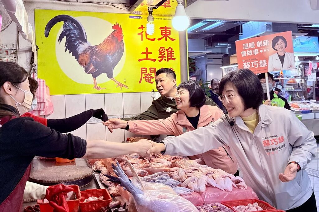 (中央社記者黃旭昇新北24日電)民進黨新北市長參選人、立委蘇巧慧今天前往新北市泰山公有市場,展開年節前第10場市場拜年行程。她表示,將持續勤走基層,強調服務不分黨派,與新北隊深入基層衝刺,爭取更多市民肯定。