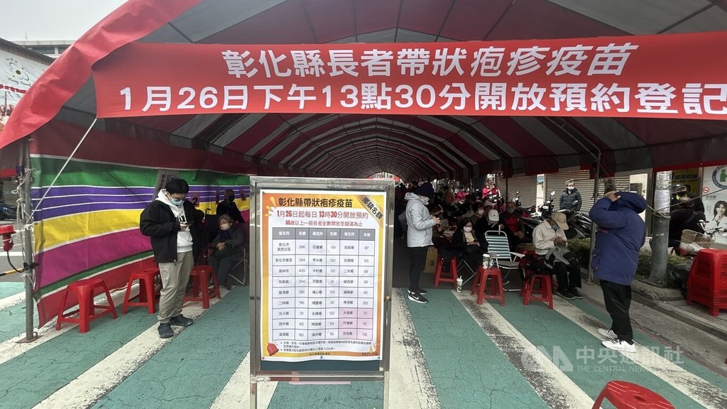 彰化縣政府自購2萬劑帶狀疱疹疫苗,補助長輩接種,20日首日開放第1期預約即額滿,衛生局宣布,施打意願遠超過預期,由於接種踴躍,26日起帶狀疱疹疫苗全數開放預約登記至額滿為止,預約時間則改為每天下午1時30分開始發放號碼牌,希望長者用餐完再前往預約。