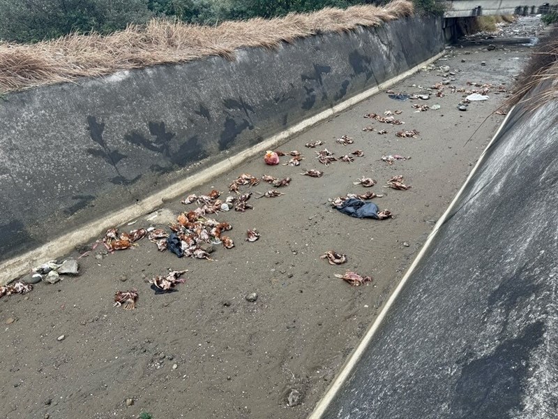 苗栗縣動物保護防疫所指出,26日接獲通報後龍鎮外埔里王爺宮大排接近出海口約50公尺處,遭棄置逾百隻死雞,經清點現場雞屍235隻,當天立即採樣送驗,隨後委由化製廠將雞屍銷毀,並針對周邊環境全面清消,另啟動周邊3公里內養禽場健康訪視。
