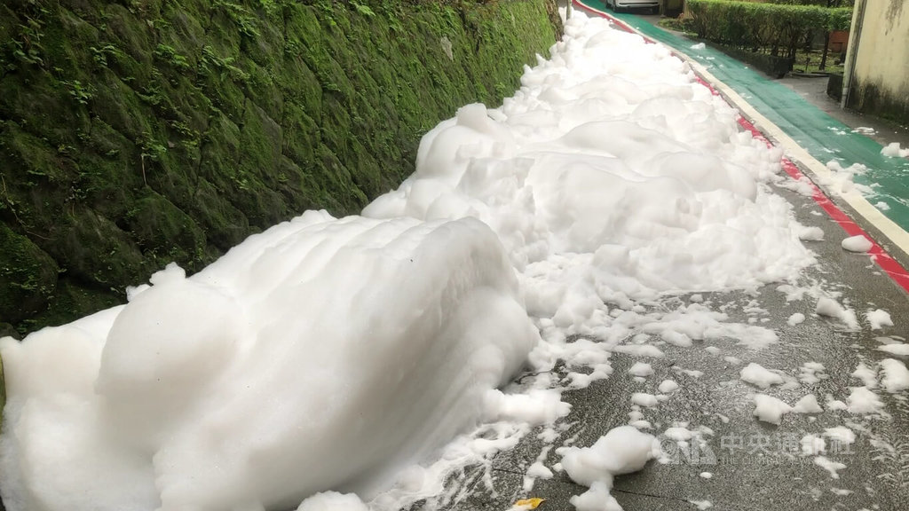 (中央社記者王朝鈺基隆28日電)基隆市壽山路一帶排水溝今天冒出大量白色泡沫,基隆市政府獲報後立刻派員前往瞭解,初步判斷並非消防泡沫,經環保局追查,泡沫疑似從民宅流出,但屋內無人暫無法入內瞭解。
