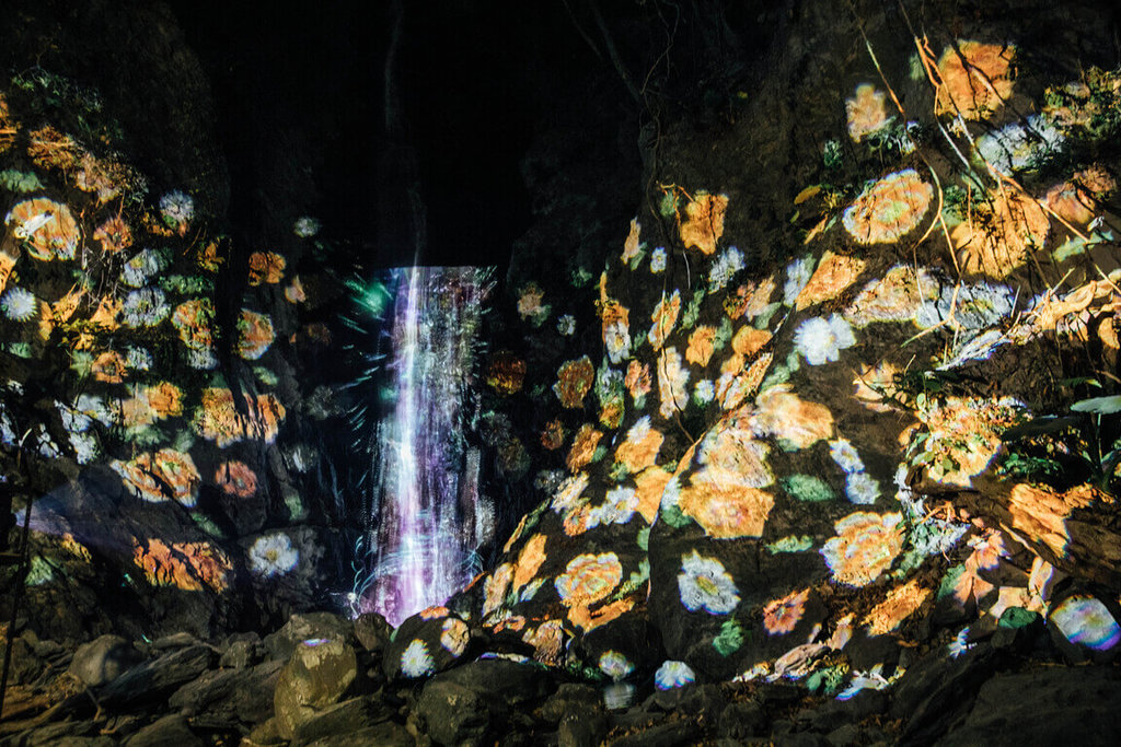 文化處指出,活動焦點為「奇幻大津」瀑布投影展演,瀑布化身為動態畫布,以自然元素為主軸,透過多段循環影像呈現萬物共生與能量流動意象,讓瀑布在夜晚展現有別於白日藝術風貌。