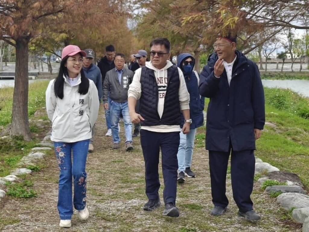 民進黨籍立委陳瑩和莊瑞雄,今天下午在池上鄉長林建宏及農業部農村發展及水土保持署台東分署長林國財陪同下,前往池上鄉辦理「池上鄉大坡池步道環境改善工程」會勘,核定改善工程費新台幣300萬元。