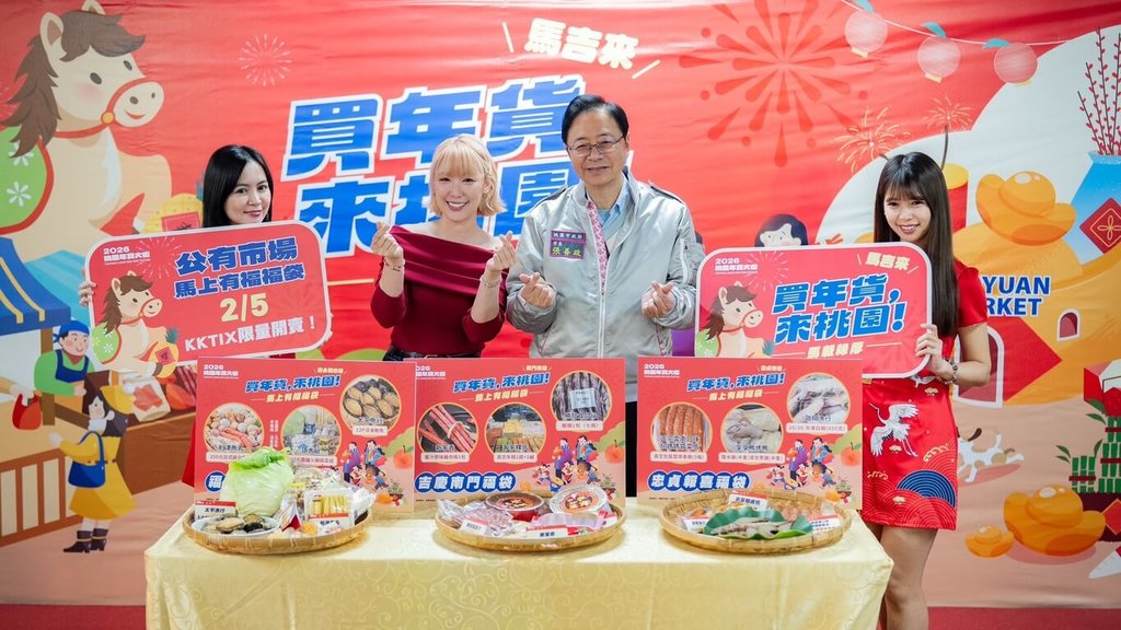 桃園市長張善政今天出席「2026桃園年貨大街開幕記者會」時表示,今年在桃園藝文廣場及中壢銀河廣場兩處規劃年貨大街,同時匯集全市14座公有傳統市場特色,推出13款限量「年味福袋」,精選「桃園上好攤」及經濟部「樂活名攤」星等攤商商品。