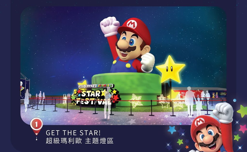 文觀局說,超級瑪利歐主題燈區主燈,是高達10公尺的瑪利歐,燈區內規劃多處角色主題拍照點,包括耀西拍照點、碧姬公主星星拍照點及超級瑪利歐銀河拍照點。