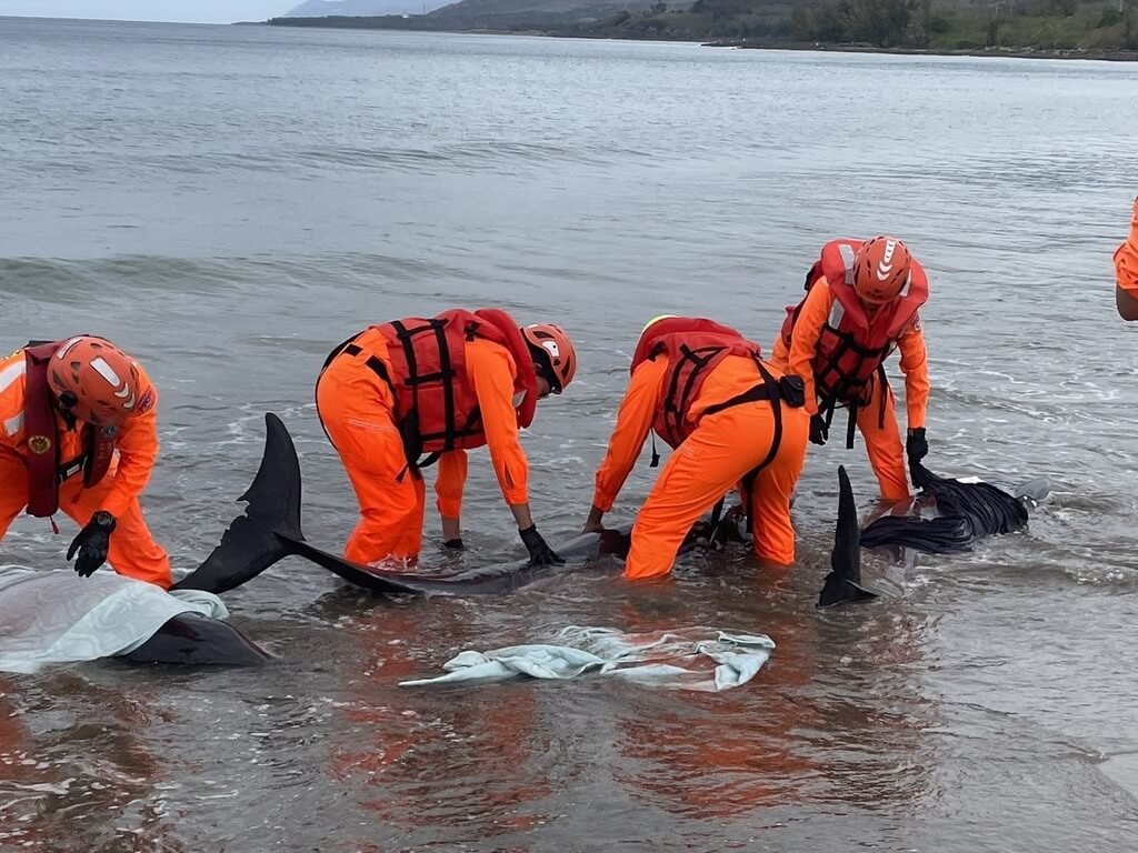 涂展龍說,現場共有11隻小虎鯨擱淺,其中4隻已不幸死亡。目前針對7隻生還小虎鯨進行搶救及實施警戒管制,以避免圍觀民眾驚擾或不當觸碰造成二次傷害;同時依標準作業程序以濕毛巾包覆,持續用海水保濕、降溫,觀察生命跡象,並配合專業人員進行後續評估與救援處理。