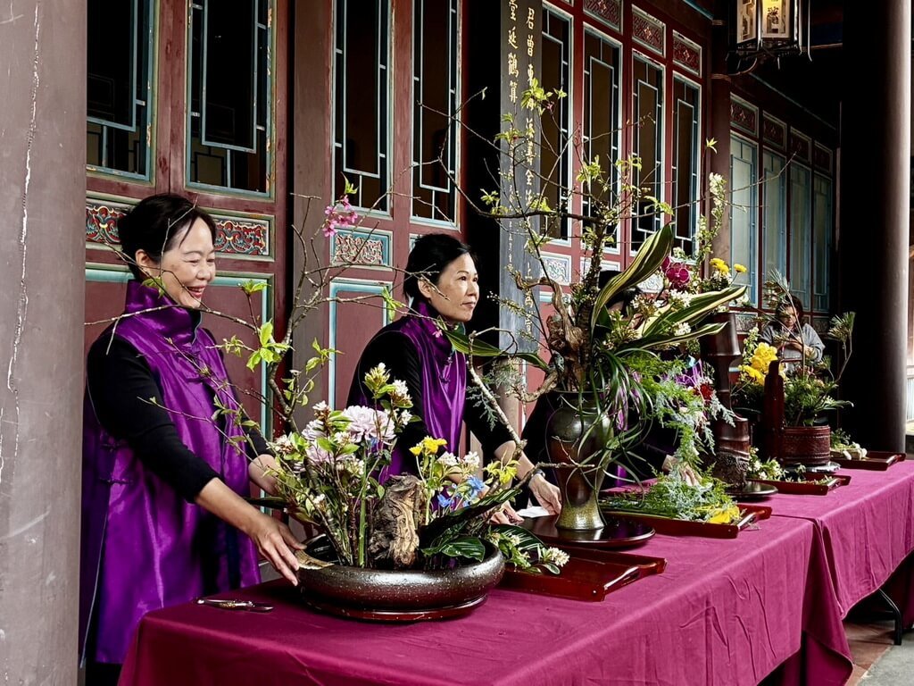 系列活動的插花特展今天開幕,林家花園與新北市中華花藝協會合辦,邀協會專業師資示範插花,並結合品茶體驗,展現花藝美學與生活文化的細緻融合。展覽至3月8日止,展覽期間部分作品將依梯次更換,呈現多元風格的花藝創作。