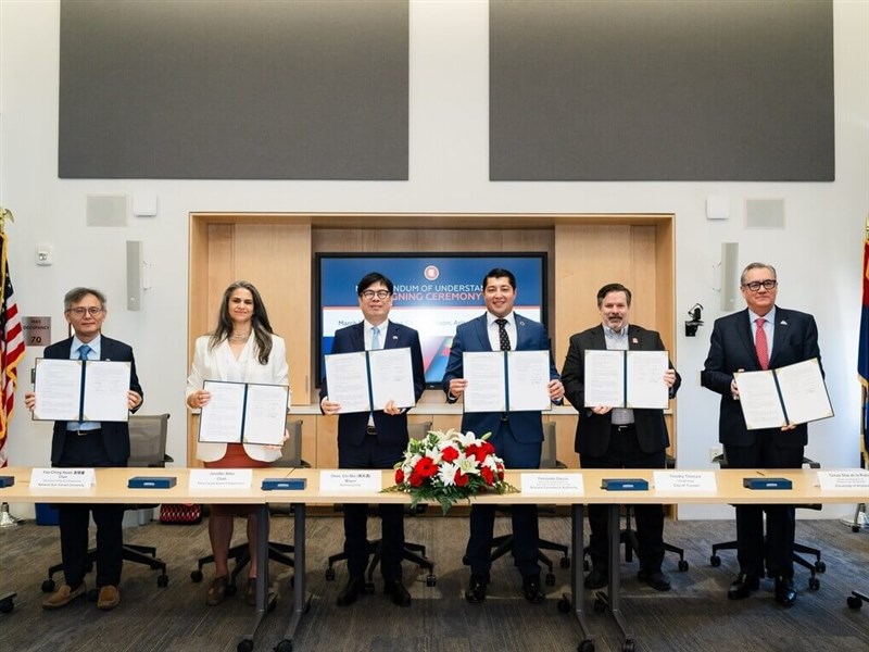 高雄市政府今天發布新聞稿表示,陳其邁於美國時間14日到土桑市(Tucson),與亞利桑那州商務廳、皮馬郡府、土桑市政府、亞利桑那大學及國立中山大學共同簽署「半導體生態系與全球人才夥伴合作備忘錄」。