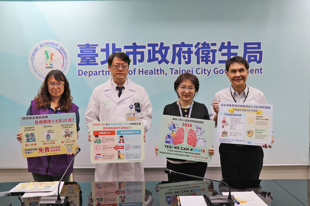 衛生局今天召開例行記者會表示,響應世界衛生組織(WHO)將每年3月24日訂定為「世界結核病日」,呼籲政府領航、民眾配合防疫,以達成2035消除結核病的目標;為鼓勵慢性病友參與「潛伏結核感染(LTBI)」篩檢,合作醫院將發給300元等值商品禮券。