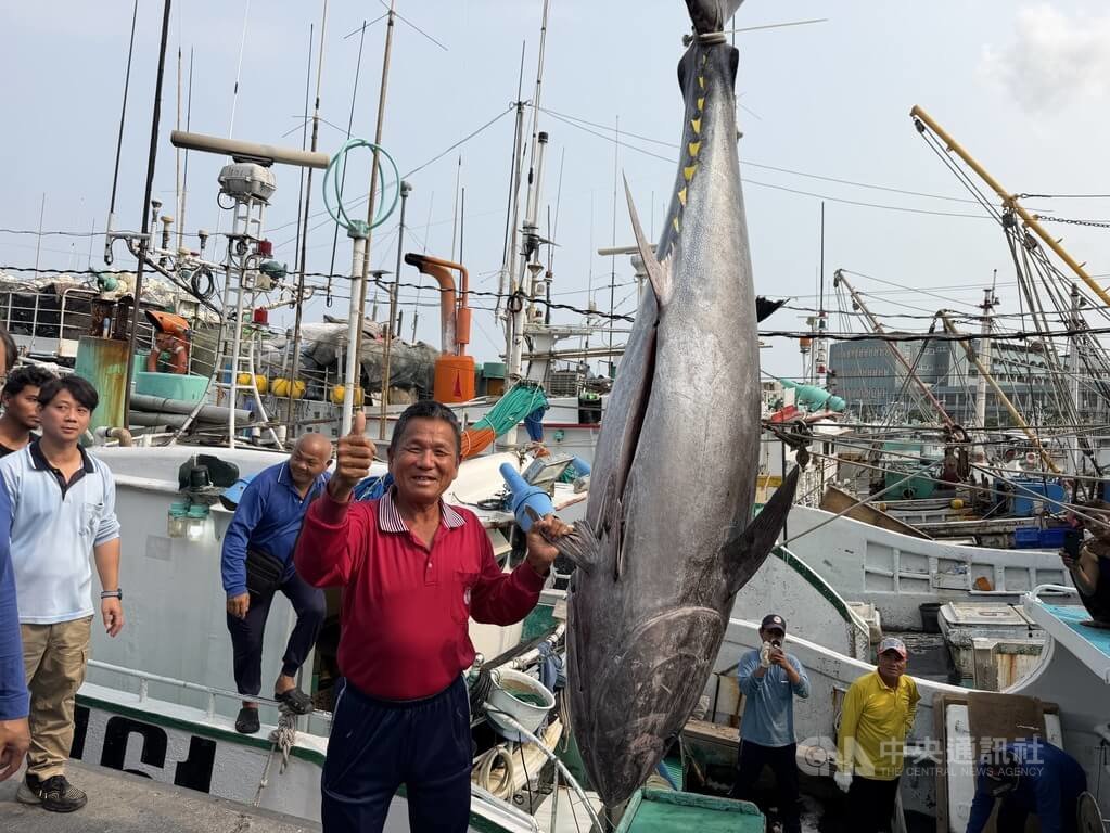 (中央社記者李卉婷屏東縣6日電)黑鮪魚汛期到來,今年屏東「第一鮪」由琉球籍漁船富漁慶2號捕獲,重量超過175公斤,符合第一鮪資格,船長洪福家開心說,出港5天驚喜捕獲,起鉤過程緊張又刺激。