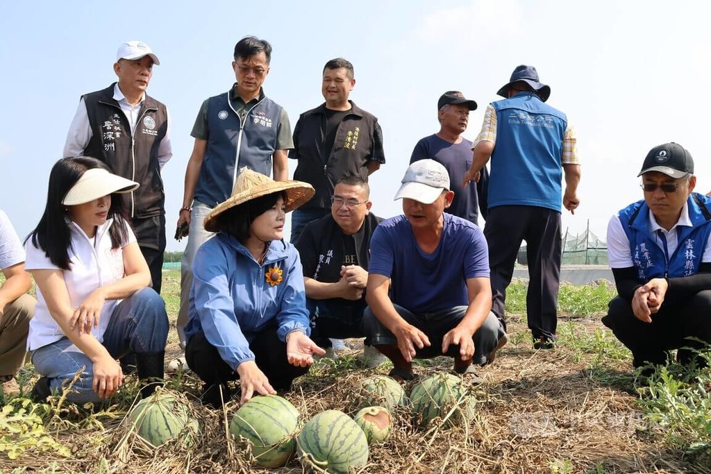 國民黨立委張嘉郡、雲林縣長張麗善、雲林縣農業處長魏勝德等人,今天到二崙鄉現勘出現災損的西瓜與南瓜。