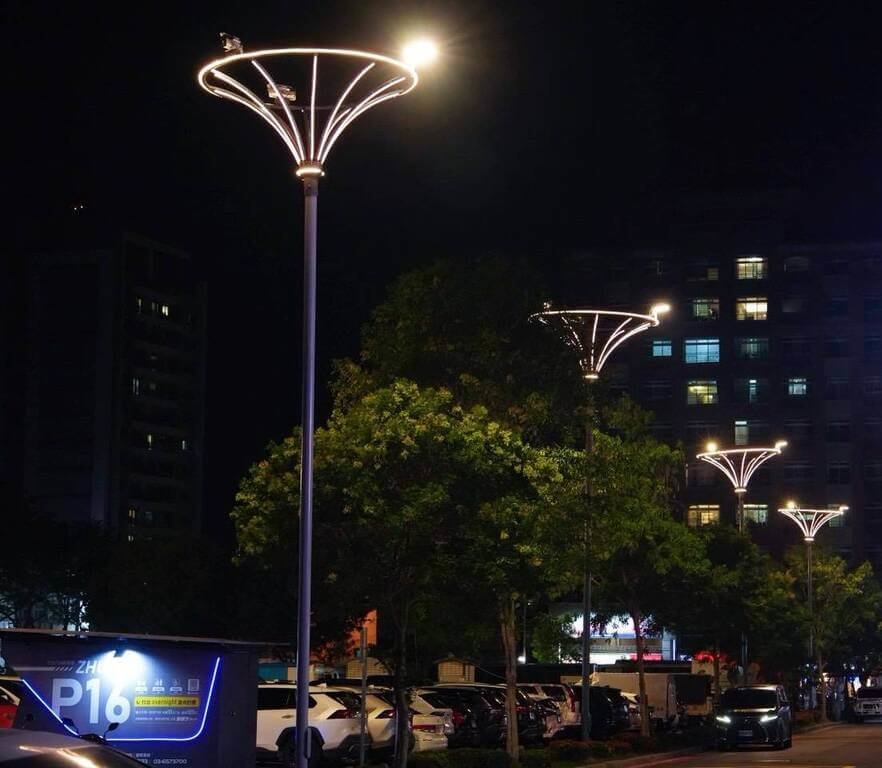 (中央社記者郭宣彣新竹縣24日電)竹北市公所表示,P16停車場因周邊商場停業致夜間照明不足,影響通行安全,公所設置「自由之花」特色路燈改善照明,兼顧安全與城市景觀,打造市區新亮點。
