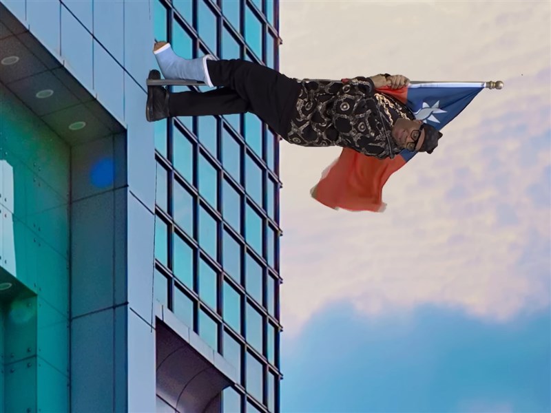 這段攀岩高手與一般路人的搞笑對比,影音平台Youtube上架1天左右,觀看次數超過88萬。不只台北101、台北市高樓群出現在畫面中,短劇尾聲瑞吉看起來像是掛在台北101建築外面,抱著中華民國國旗,一邊喊著「救命」。(編輯:陳慧萍)1150120