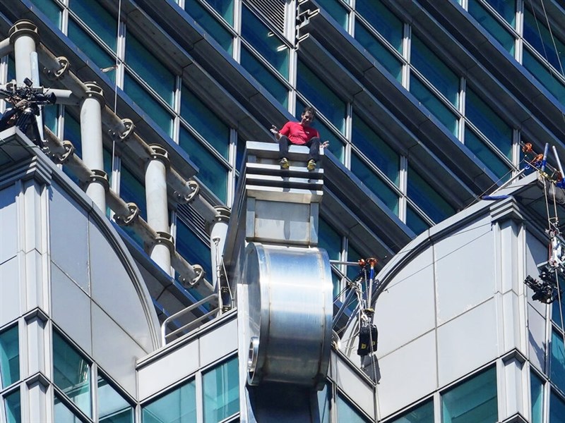 霍諾德強調,今天天氣非常棒、非常舒服,「我就是努力保持平衡,不要掉下去(笑),今天是觀賞台北非常好的一種方式,幾乎沒有雲層,天空也非常地藍。」