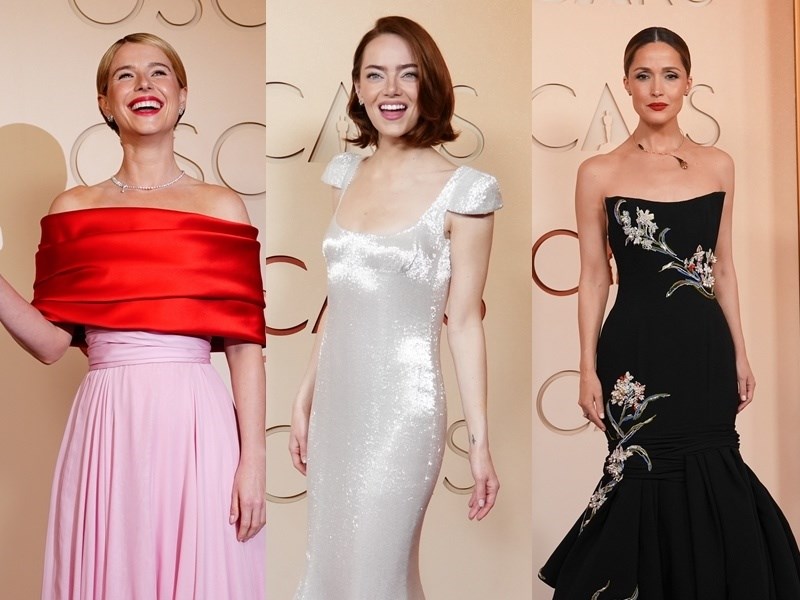 奧斯卡紅毯 潔西伯克利粉紅長裙吸睛、艾瑪史東白色閃耀禮服飄仙氣