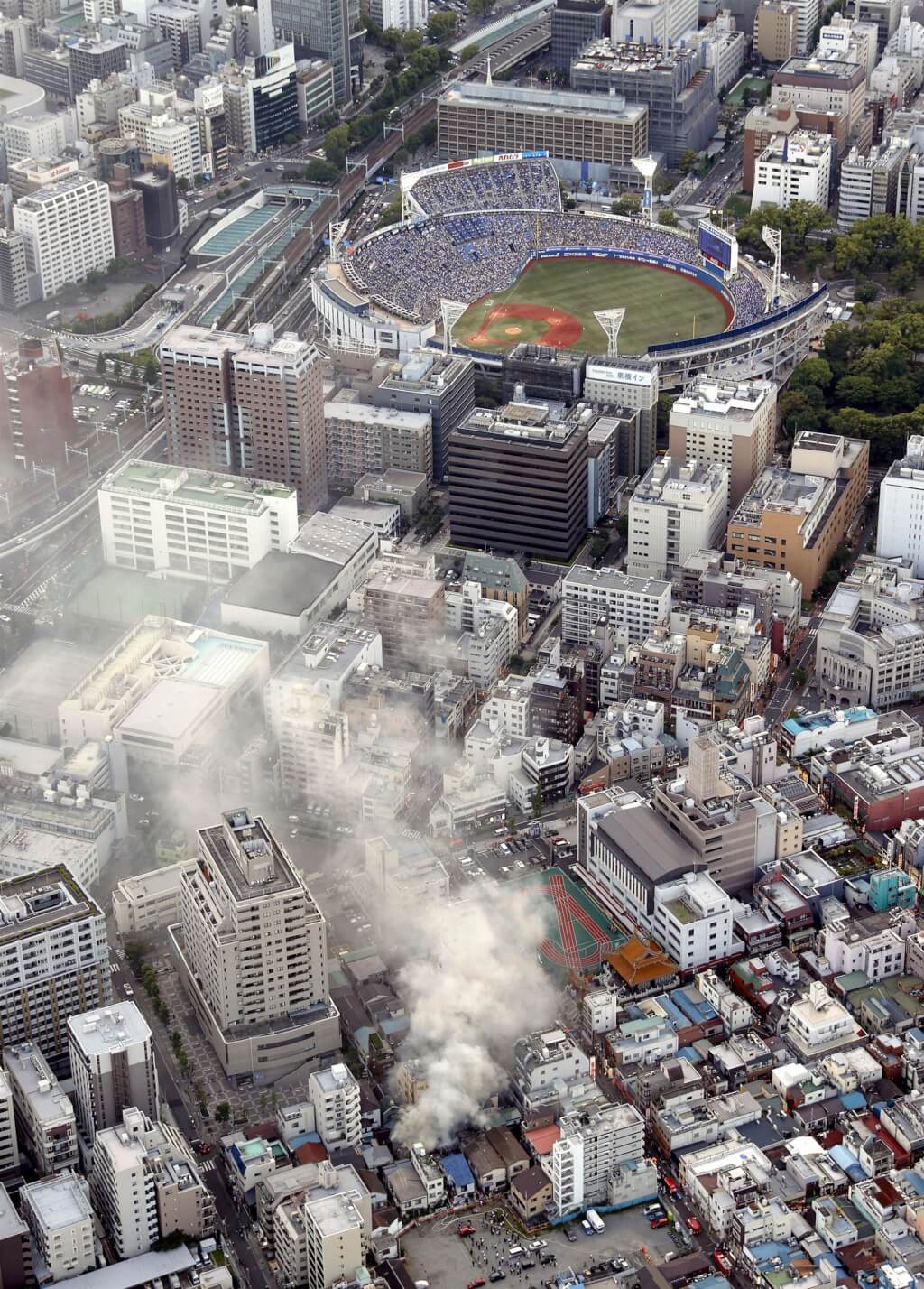 「報知體育」等日媒報導,位於火災現場附近的橫濱球場,今晚正好舉辦橫濱DeNA海灣之星隊與福岡軟銀鷹隊的比賽。