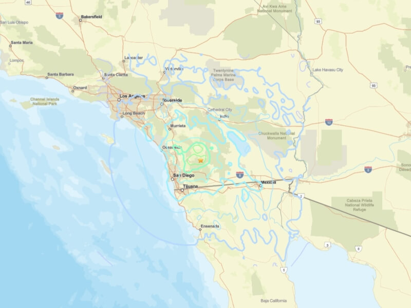 美國地質調查所指出,這起規模5.2地震的震央位於聖地牙哥郡(San Diego County)朱利安(Julian)以南4公里處,震源深度僅13.4公里。