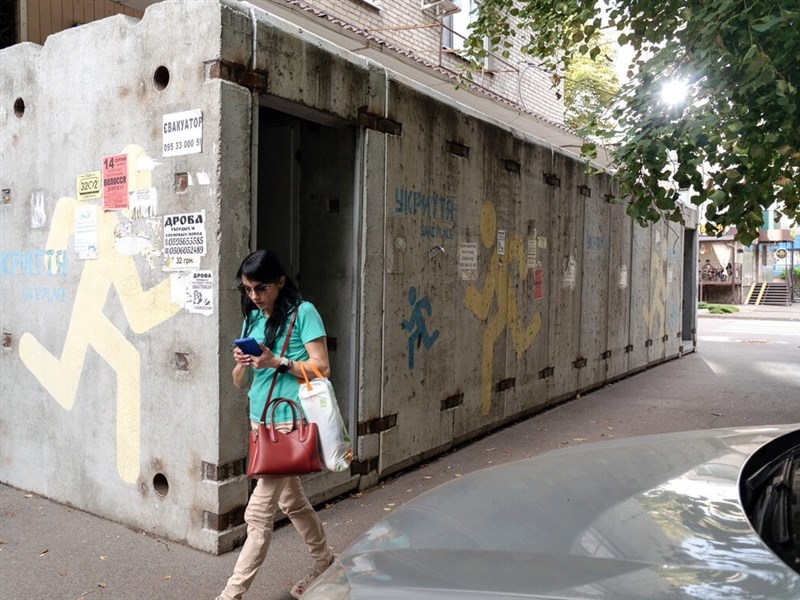 市內亦可見戰爭期間臨時的避難設施,設有加固牆體與簡易座椅,估計可容納20人左右。不過,多數避難所外牆佈滿塗鴉,顯示使用率不高。雖未聽見密集砲火聲,城市街道卻遍佈戰火遺痕。月初俄軍空襲當地一間飯店,建築遭轟出大坑,波及附近民宅。