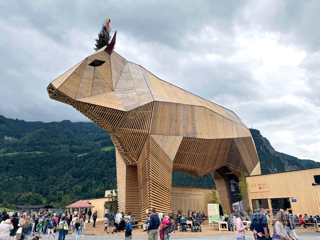 巨型木牛吉祥物矗立於場地中央,名為小公牛馬克思(Muni Max)。這座裝置藝術以瑞士當地木材打造,高21.3公尺、寬9.75公尺、長36.25公尺,總重超過182公噸,堪稱歐洲最大木雕裝置。