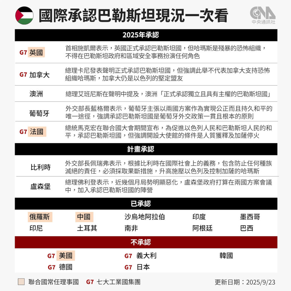 - 自治政府要哈瑪斯繳械 巴勒斯坦人對國際承認冷感2025/09/23 04:56