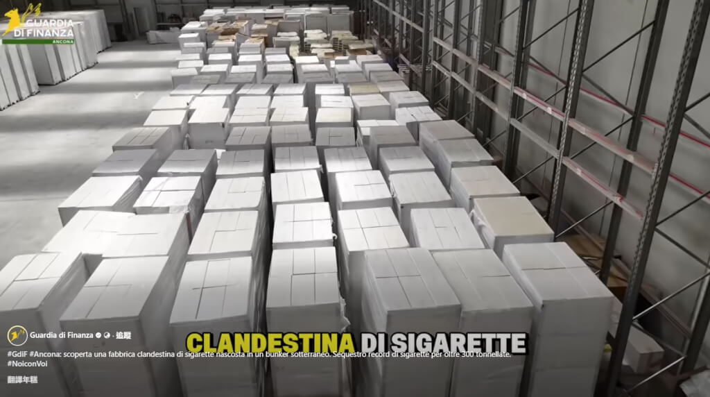 法新社報導,警方在羅馬東南方市鎮卡席諾(Cassino)附近破獲一座地下工廠,占地1600平方公尺,據估計每日生產超過700萬根香菸,年產量約27億根。