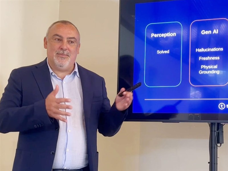 中央社記者在會中提問AI帶來的資安風險,例如義大利政府今年1月底率先宣布禁用中國DeepSeek人工智慧公司。對此特隆波第舉起手機笑答,「為什麼我們的翻譯公司不能與 DeepSeek合作?我用一個簡單句子來測試就能解釋。」