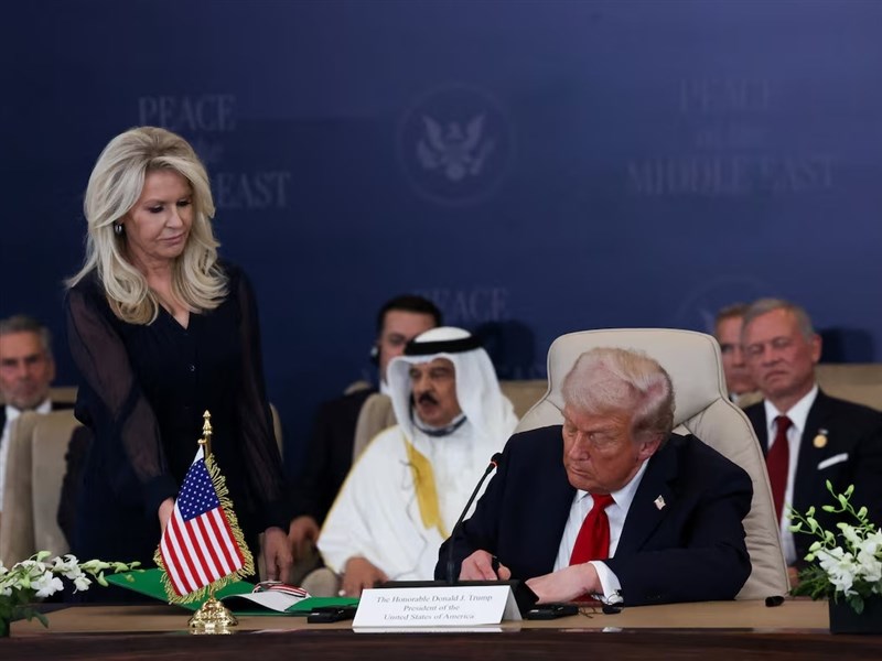 法新社報導,川普(Donald Trump)閃電訪問以色列,在國會發表演說時讚揚以色列總理尼坦雅胡(Benjamin Netanyahu),隨後飛往埃及參加加薩高峰會,與埃及、卡達和土耳其領袖簽署宣言,成為加薩協議的保證方。