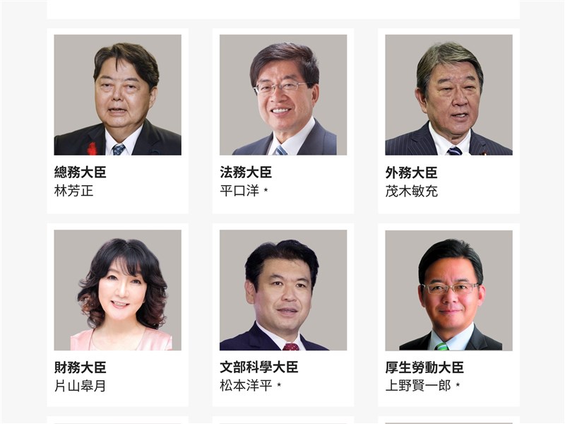 (中央社東京21日綜合外電報導)日本自民黨總裁高市早苗今天被國會指名為日本第104任首相,並完成組閣,新任內閣官房長官木原稔下午對外宣布內閣名單,其中包含2名女閣員,共有10人首次被延攬入閣。