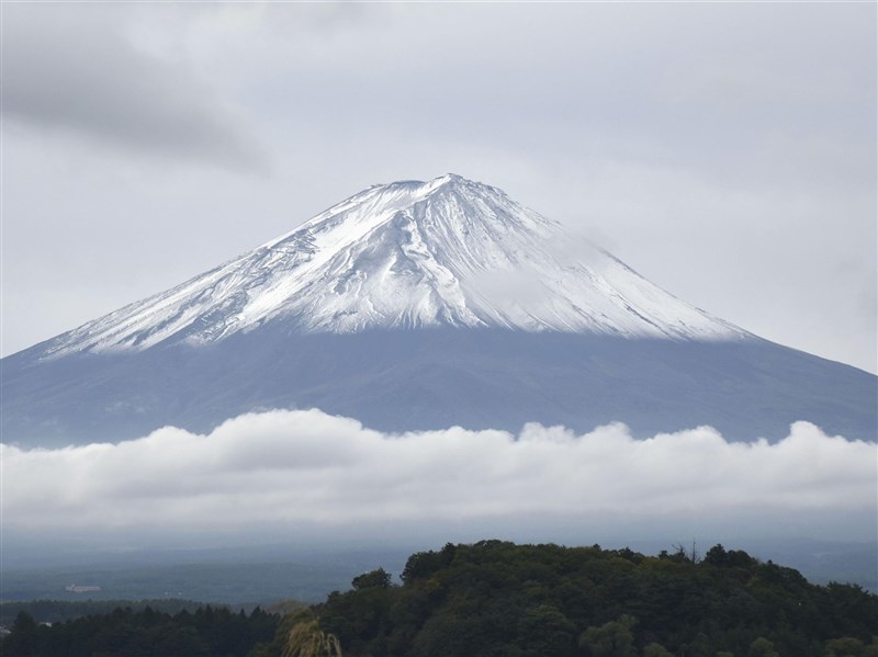 共同社報導,據稱富士山今年的初冠雪較往年平均晚21天,但比起創下1894年開始觀測以來最晚紀錄的去年早了15天。