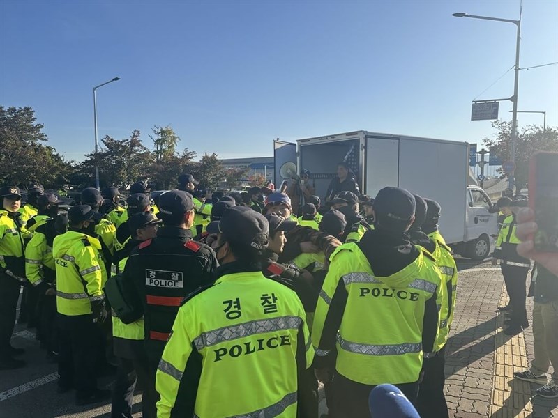 (中央社記者廖禹揚首爾30日專電)美國總統川普及中國國家主席習近平今天將在韓國釜山進行會談,傳聞可能是會面場所的金海國際機場鄰近道路一早就出現反中民眾示威。
