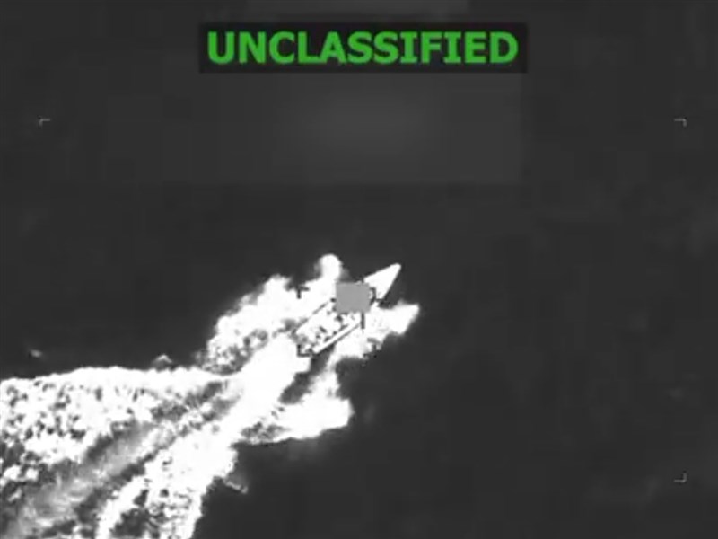 赫格塞斯(Pete Hegseth)於社群平台X公開最新空拍攻擊畫面。他表示,這次行動與過去一樣發生在公海,並鎖定「由被認定為恐怖組織營運的船隻」。