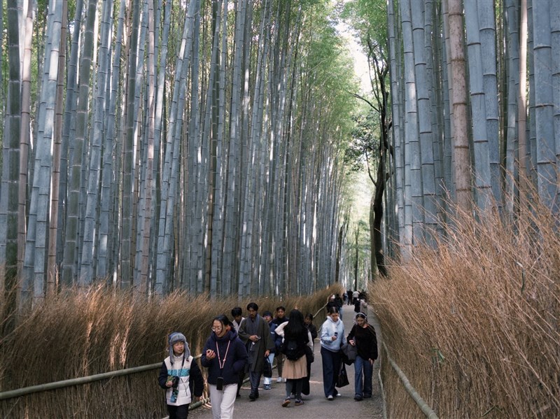 京都每天都被外國觀光客擠爆,其中知名的嵐山「竹林小徑」由約7000根竹子連綿組成,一片綠意是許多觀光客留影地點。