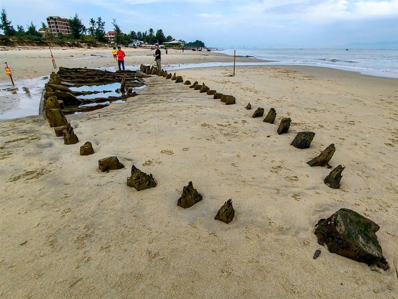 法新社報導,這艘長度至少17.4公尺的沉船於2023年首次在會安(Hoi An)外海被發現,該船具有厚重的木製肋骨船身,歷經數百年風浪仍幾乎完好無損。當時還來不及開挖,海水就蓋過這艘船。