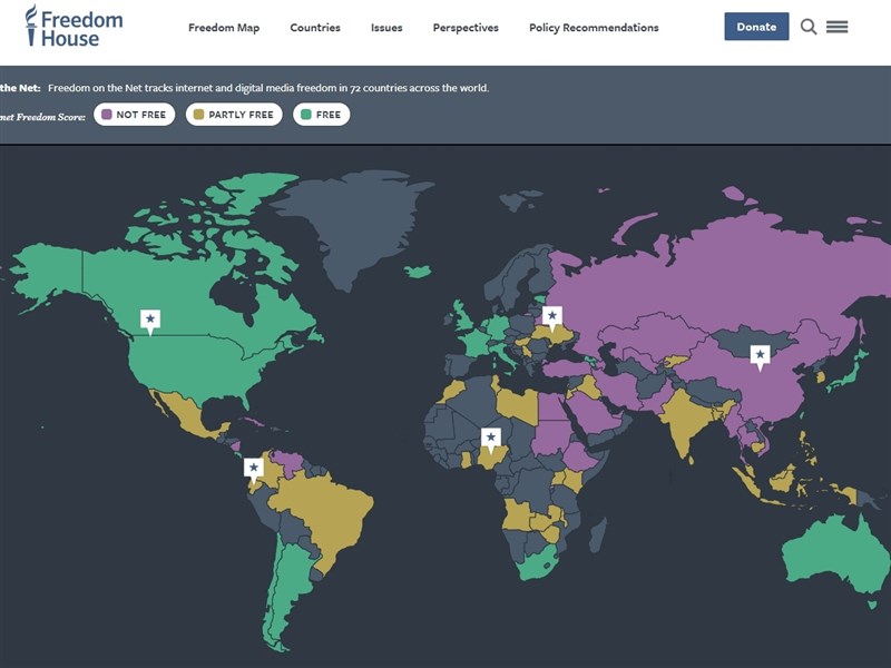 法新社報導,總部設於華盛頓的民主研究組織「自由之家」(Freedom House)發布「網路自由度報告」(Freedom on the Net)指出,美國與德國的網路自由度雙雙下滑,顯示西方民主國家與專制政權一樣,正在對網路施加愈來愈多限制。