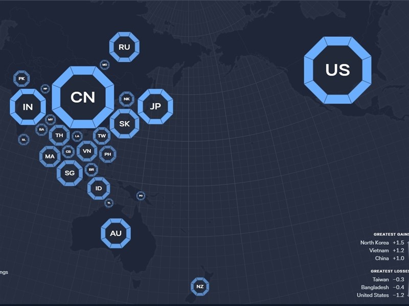 亞洲實力指數台灣排名14得分略降 東協中等強權崛起