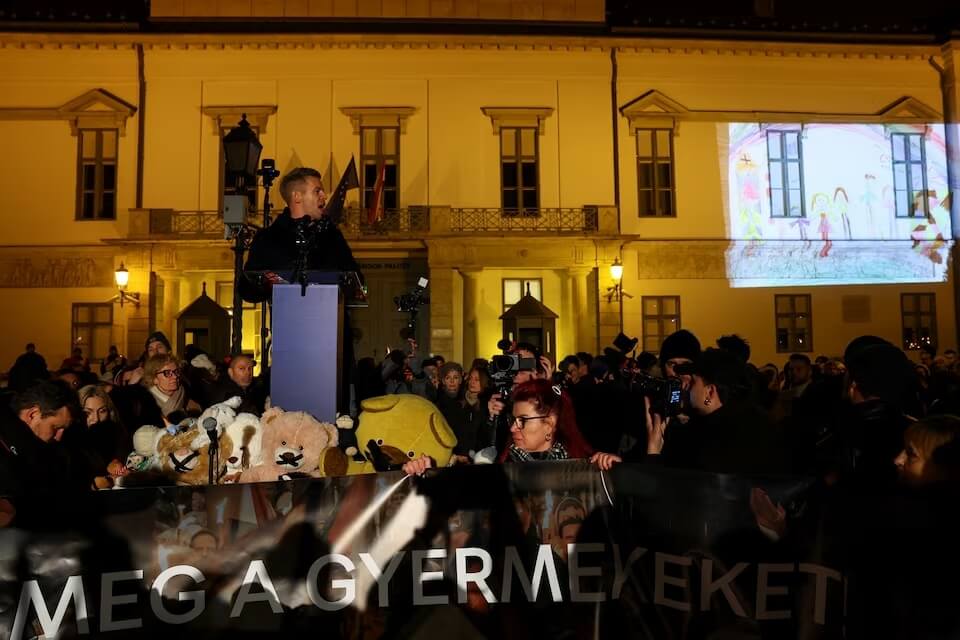 根據法新社記者報導,至少有5萬人參與示威,其中一些人手持可愛的兒童玩具。馬格雅帶領著群眾,高舉寫有「保護兒童」的標語。