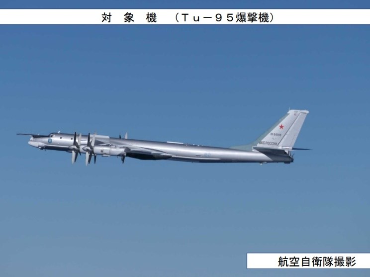 防衛省9日表示,兩架可搭載核武器的俄羅斯Tu-95核戰略轟炸機從日本海飛往東海,與兩架中國轟-6(H-6)轟炸機會合後,一路飛行至日本四國外海的太平洋上空,進行長距離的聯合飛行。