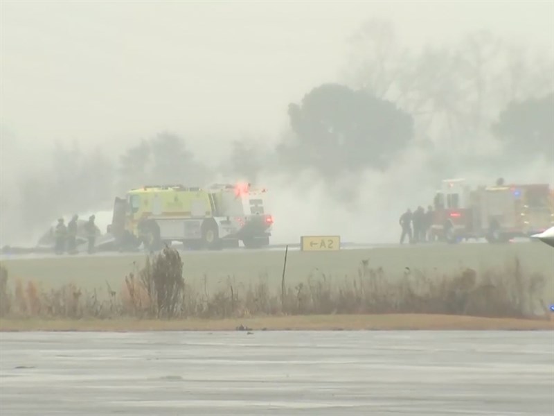電視台畫面顯示,救難人員趕往跑道,四散的飛機殘骸附近冒出火焰。