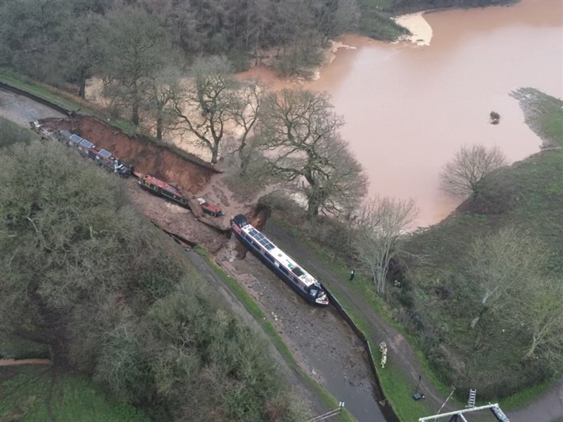 施洛普夏郡消防救援局(Shropshire Fire and Rescue Service)表示,他們獲報運河塌陷,並證實一處運河受到影響。