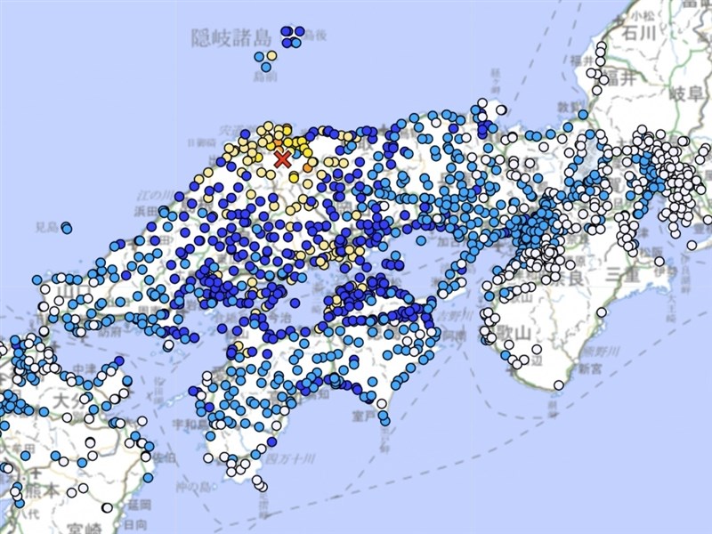 日本地震規模6.2最大震度島根鳥取5強 大阪、福岡也有感