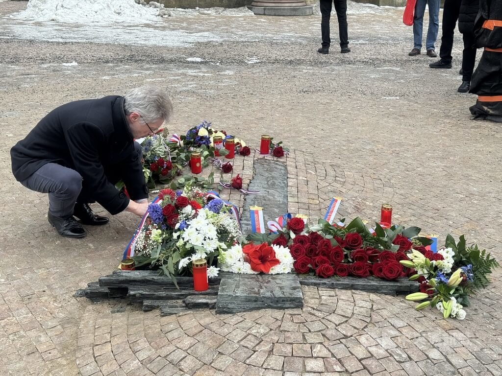 捷克參議長維特齊(Miloš Vystrčil)今天與其他參議員,一同在紀念碑前獻花與追思帕拉赫。維特齊受訪時表示,當代社會可以從帕拉赫的行動中汲取一項重要的啟示,那就是拒絕麻木與袖手旁觀。「當今世界各地衝突不斷,自由與民主在許多地方正面臨威脅。這些正是我們必須堅定捍衛的價值,此時此刻應當全力支持那些渴望民主與自由的人。無論是在捷克國內,或是在世界其他地方。」