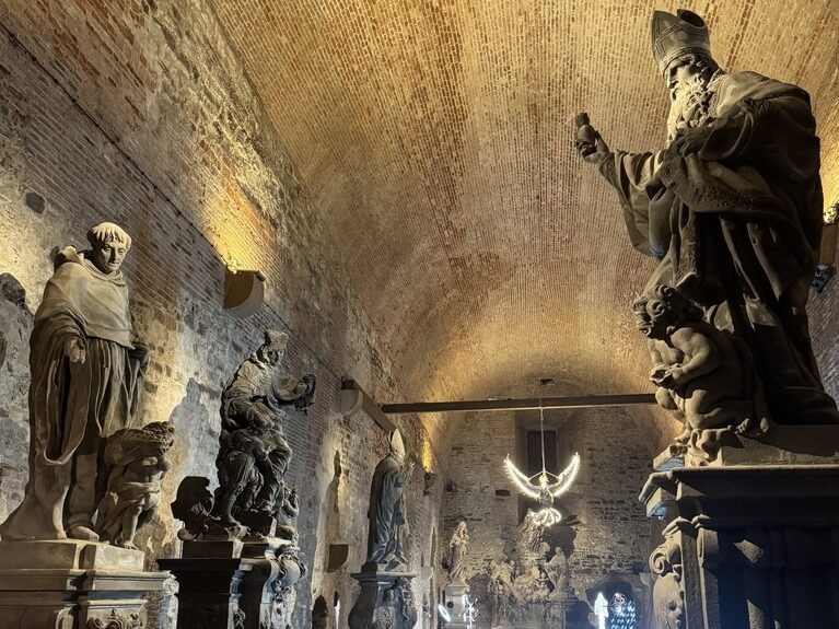派屈克表示,為保護橋上的巴洛克原始雕像不受風吹雨淋,自1919年起,陸續被移至此處保存。目前查理大橋上的雕像多半為複製品,30件雕像僅有12尊為真跡原作。