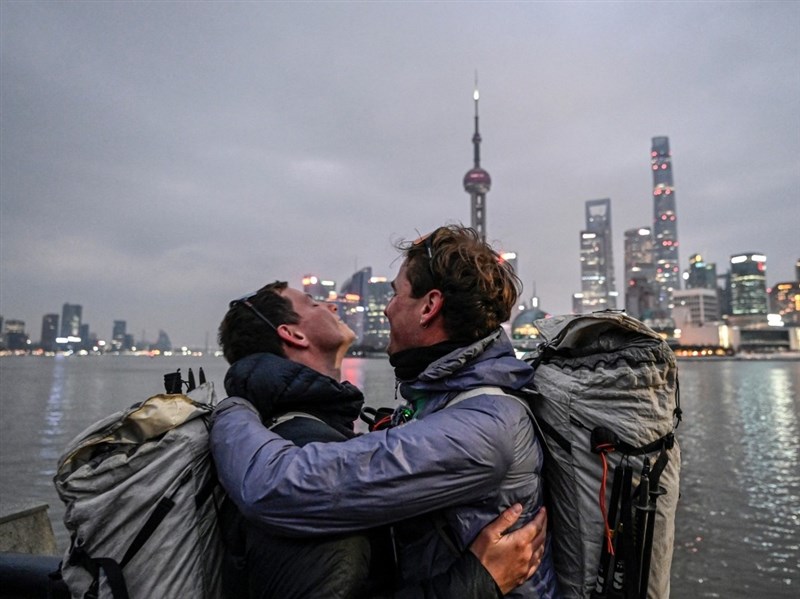 (中央社上海8日綜合外電報導)兩名法國冒險家昨天抵達上海,完成從家鄉出發、歷時近1年半的史詩級徒步旅程。他們橫跨16個國家,幾乎全程步行。