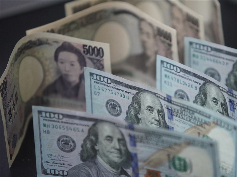 圖為日圓及美元紙鈔。(中央社檔案照片)