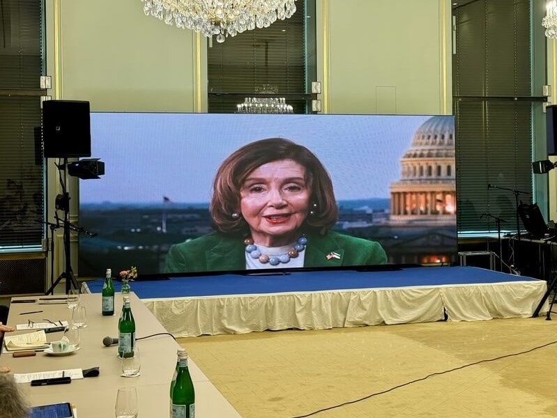 赴柏林參加論壇的美國前眾議院議長裴洛西(Nancy Pelosi)也透過視訊與會。她在致詞時指出,烏克蘭與台灣是「同一個故事的兩個篇章」,威權政體正測試國際社會是否容許以武力改變秩序、以威嚇壓制自由。