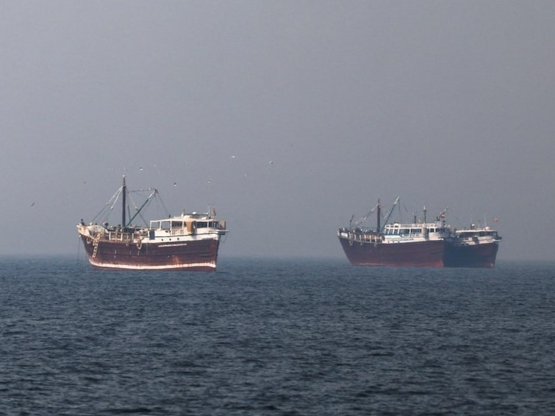 2日滯留在荷莫茲海峽的船隻。(路透社)