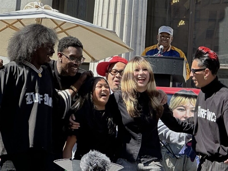 加州奧克蘭市今天舉辦盛大派對,慶祝米蘭冬季奧運花式滑冰金牌得主劉美賢(Alysa Liu)凱旋歸來。劉美賢派對前與教練團一同現身記者會,她以招牌棕金色挑染髮型、一身深色休閒裝亮相,現場鎂光燈閃不停,她表示正在學習適應成名後的新生活。