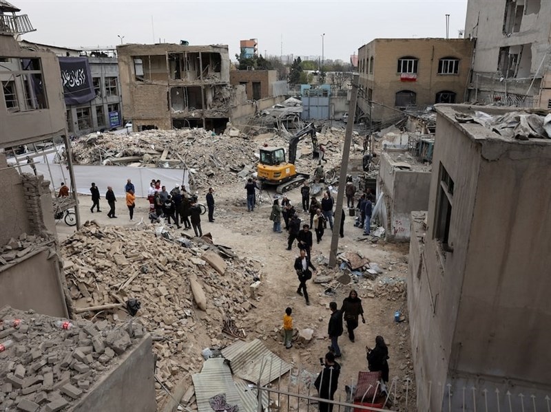 伊朗首都德黑蘭15日遭襲擊後,居民從倒塌的房屋走出。(Majid Asgaripour/WANA (West Asia News Agency) via 路透社)