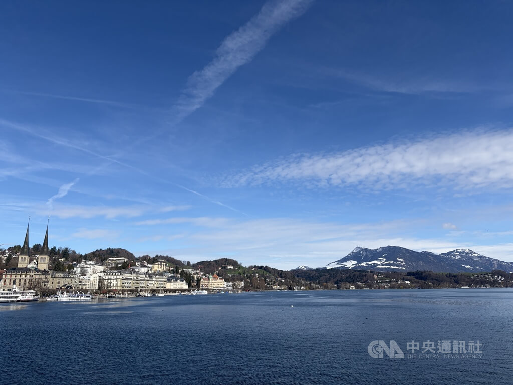 雪山湖景是瑞士琉森著名的觀光特色,旅遊旺季時湖畔是觀光巴士的下車地點,總有滿滿人潮,目前散客零星。中央社記者郭芳君琉森攝 115年3月23日